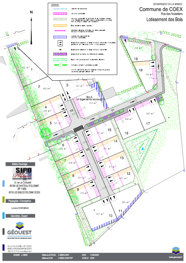 Le lotissement est situé rue des Noisetiers à proximité du bourg de Coëx. Il bénéficie d'un jolie vue ouverte sur la campagne.